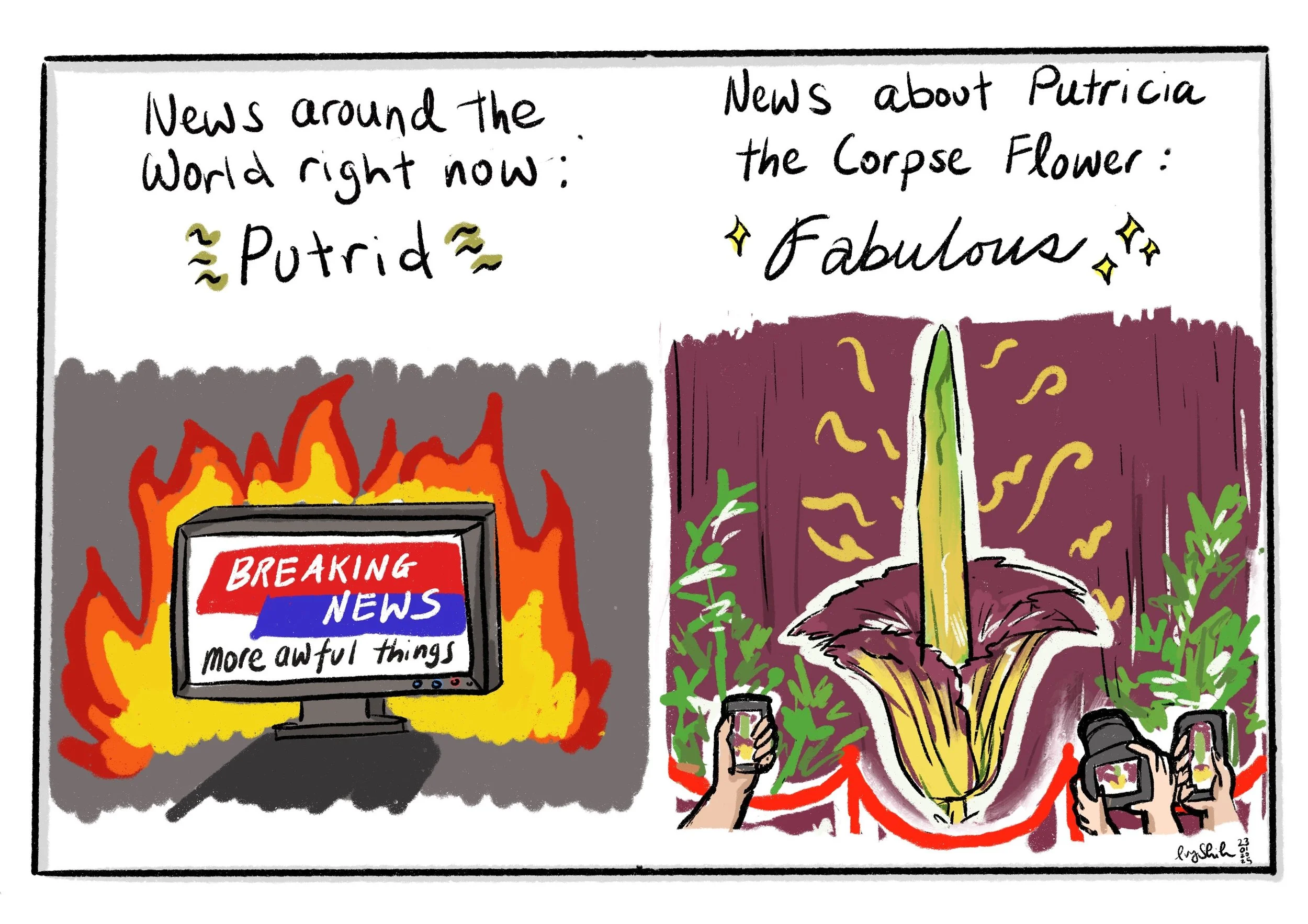 In addition to writing and producing science stories, I also draw cartoons and comics about science research and experiences working in media/ journalism.